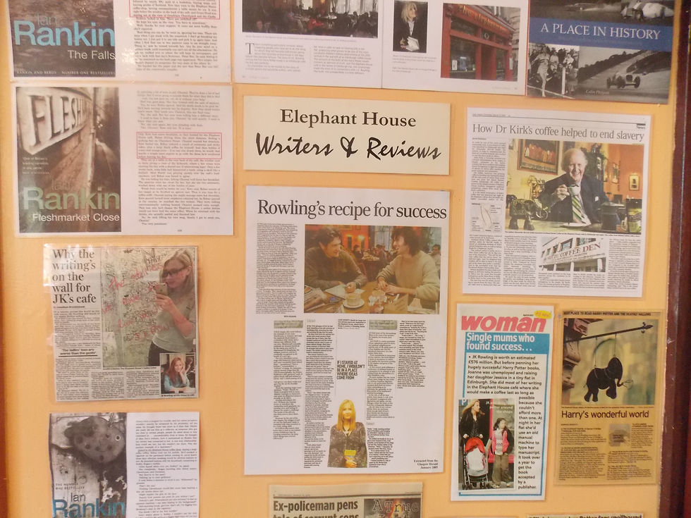 Segundo o guia turístico da cidade, JK Rowling ia para cafeterias porque não teria dinheiro para alugar um apartamento com aquecimento, já que isso é algo caro em Edinburgh. Mas, segundo uma entrevista sua para a BBC, este fato é irreal, pois ela alugara um apartamento com aquecimento, escolhendo os cafés como um meio de fazer seu nenê cair no sono.